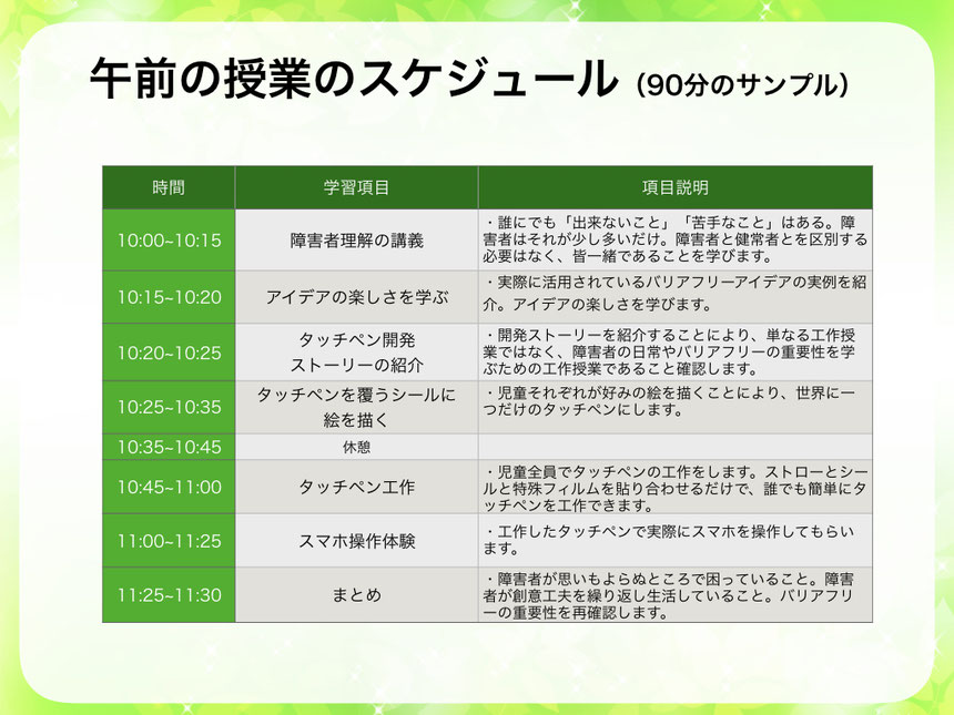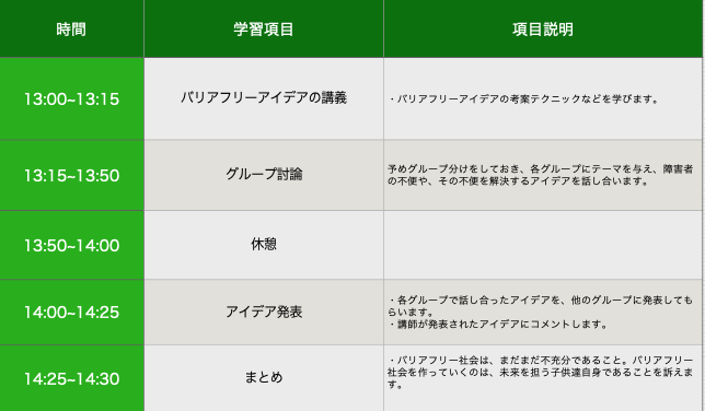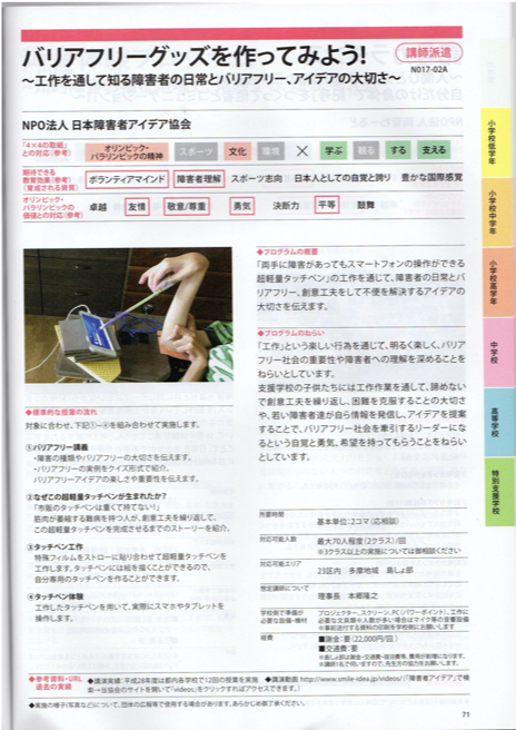 そんな障害者の日常とバリアフリーの重要性を、工作やアイデア考案という楽しい体験を通し学ぶことができます。