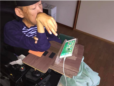 筋肉が萎縮するSMAという難病を抱える大山さんが考案した「超軽量のタッチペン」。