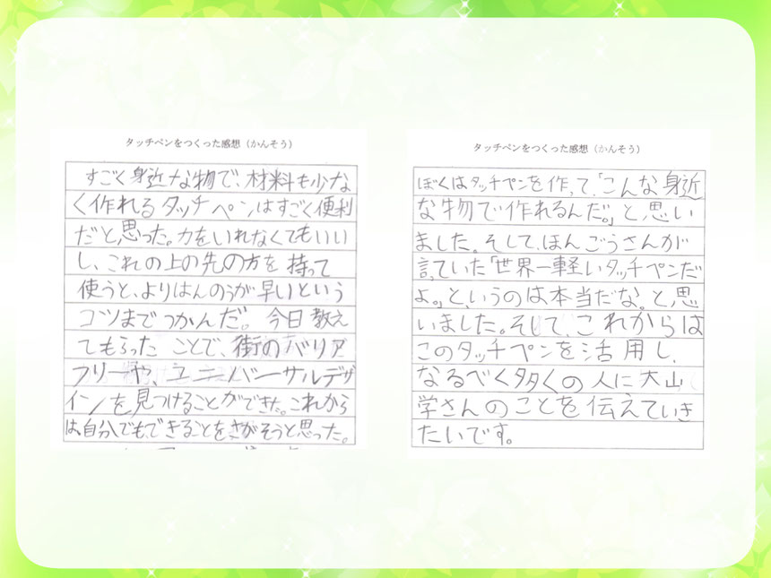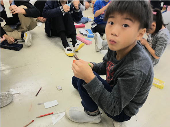 午前の工作授業でバリアフリーの世界に触れた子供達。